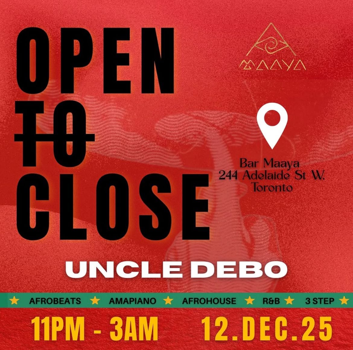 Open To Close - Bar Maaya, 244 Adelaide St W • December 12 - 11:00 PM - 3:00 AM - Toronto - Buy Ticket