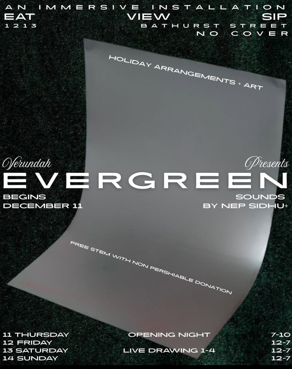 EVERGREEN (Opening Night) - 1213 Bathurst St • December 11 - 7:00 PM - 10:00 PM - Toronto - FREE - Learn More