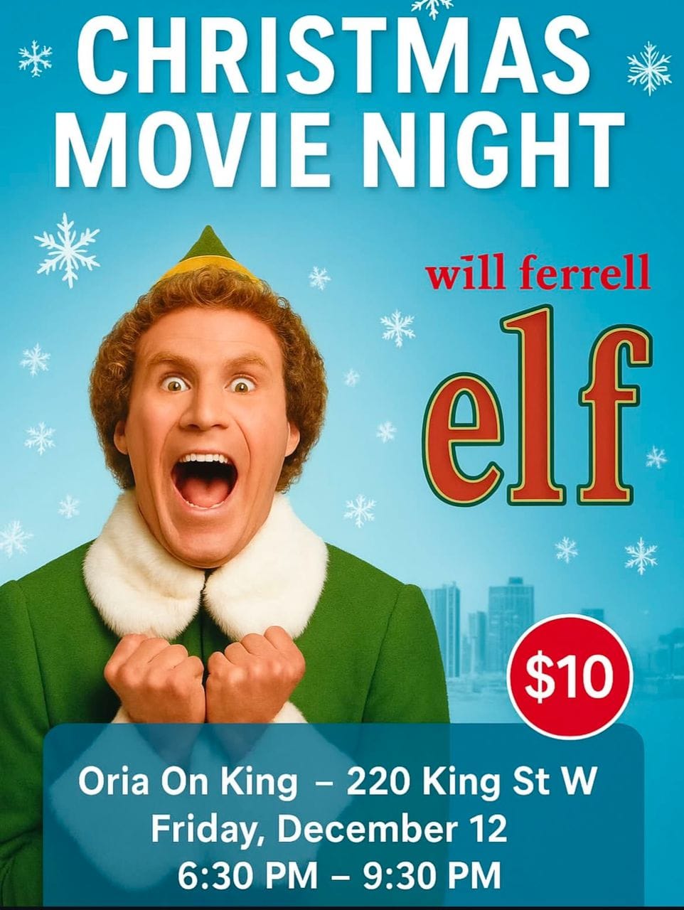 Christmas Movie Night: Elf - Oria on King, 220 King Street W • December 12 - 6:30 PM - 9:30 PM - Toronto - Buy Ticket