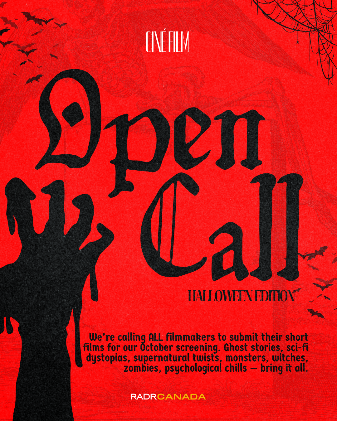 We’re calling on all filmmakers to send in their best scary short for Ciné Film: Halloween Edition 🕷️⚰️